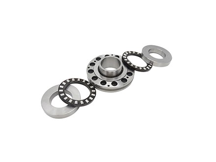 滚针/推力圆柱滚子轴承包括一个加厚的外圈、滚针保持器组件、滚针内圈、两个推力圆柱滚子保持器组件和两个推理轴圈,相当于一套滚针轴承和两套推力圆柱滚子轴承的组合轴承,两个推力圆柱滚子轴承中心和滚针轴承中心重合。